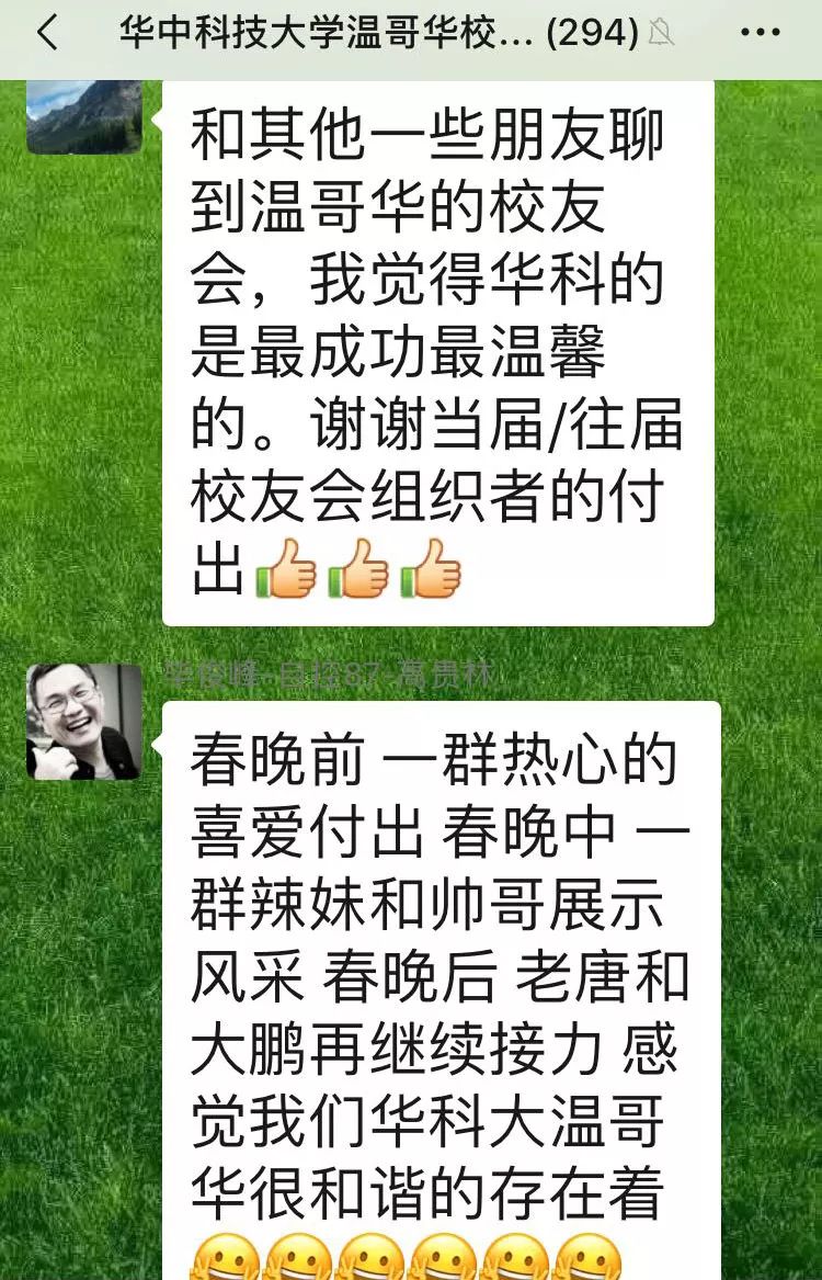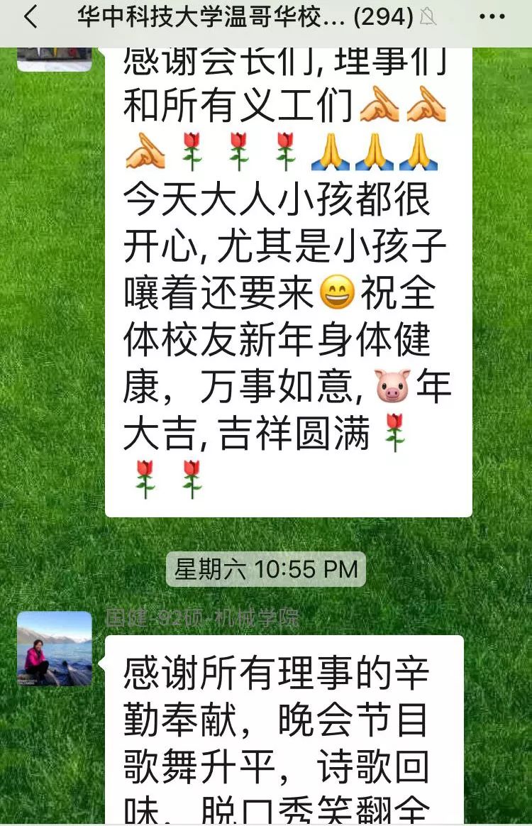 这次的春晚,华科大温哥华校友会不仅收到了现华中科技大学党委邵新宇书记的拜年短信,以及美国北加州、密歇根州、澳大利亚、德国、新加坡等各校友会的祝贺(哇,我们的校友遍天下啊)。