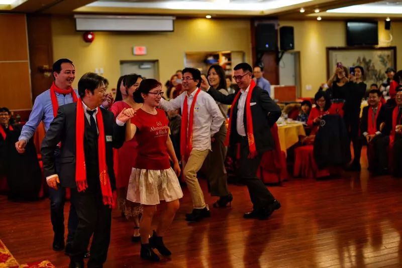 闵向荣校友组织这一届理事们跳青春圆舞曲。