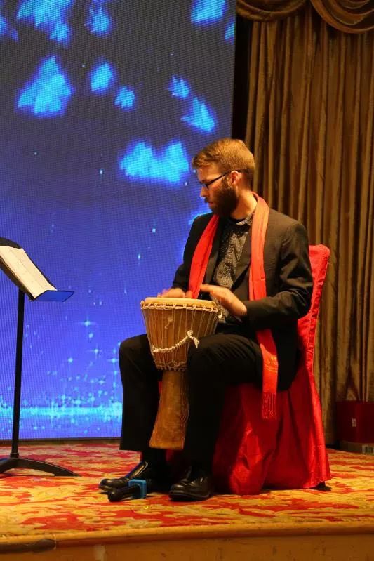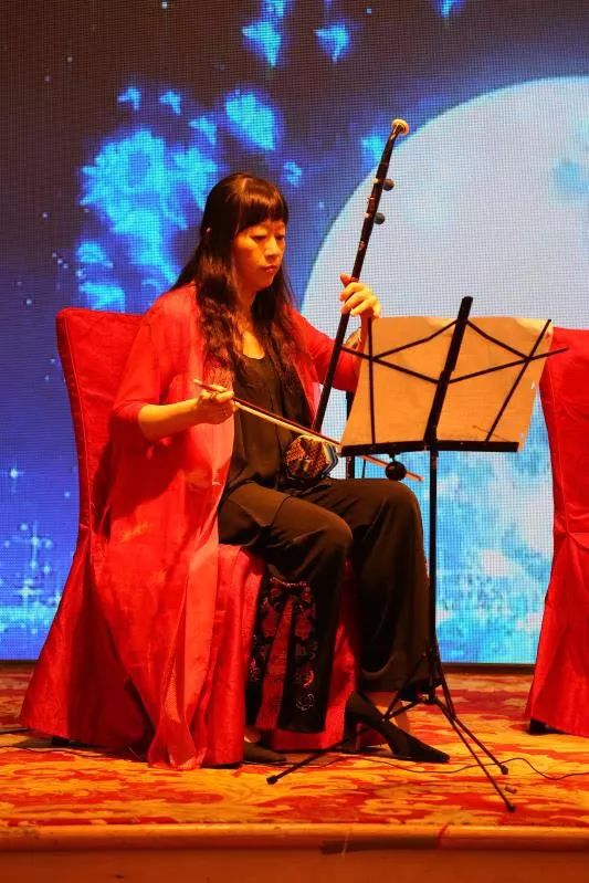 新理事会的徐屹校友不仅和王东会长共同分担了晚会吃饭的费用,而且还让夫人常青老师亲自带来节目,常青老师毕业于中央音乐学院,是琵琶演奏家,这一次常青老师和UBC的打击乐老师Aaron Graham,台湾的艺术家Lan Tung 联袂演奏,技艺精湛令人赞叹!